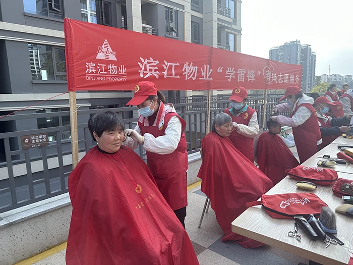 传承雷锋精神,杭州海名雅园工程师傅为业主现场磨刀60多把,保洁人员洗净业主地毯80余张,志愿者业主为邻里修改裤脚20余条,在万固郡府担任秩序主管的杨海军有剪发技能,为该小区20余位老人爱心义剪,他们用行动实践雷锋精神,乐于奉献。