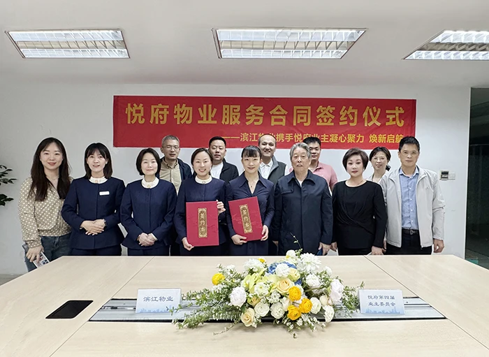 2025年4月15日,滨江物业与悦府第四届业主委员会举行悦府物业服务合同签约仪式,这意味着滨江物业将再次入驻悦府,开启高品质服务。公司将承载“从心出发,让爱回家”的服务理念,秉承“业主第一、服务第一、品质第一”的企业宗旨,坚持品质服务,深耕高端住宅项目,力求让悦府成为杭州市高端住宅典范项目。