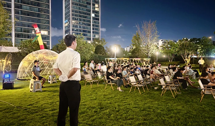永康凤凰城七月放映了一场《雄狮少年》露天电影,孩子们专注观影的笑脸与长辈们回忆露天电影的时光重叠,连起露天电影的长长时间线。物业精心准备了爆米花、清凉冷饮、解暑绿豆汤,为业主带来观影的清凉享受。首映活动结束后,业主们意犹未尽,已在期待八月的第二场露天电影。