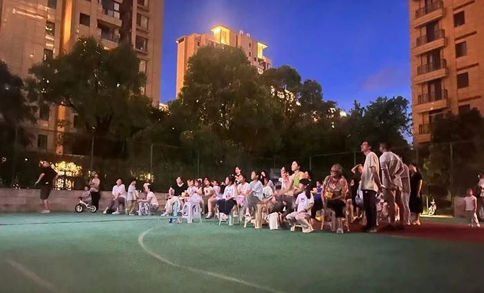 露天电影节的小区氛围感