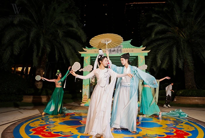 晚会以多元化形式呈现,AI机器狗的表演引领未来科技,多才多艺的业主用歌声、民族舞、旗袍秀、器乐演奏等表演形式表达对美好生活的向往。杭州武林壹号宋韵美学的游园会打开一个传承古典、精致生活的优雅空间;杭州湖翠里以沉浸式草坪音乐会让业主在自然景观中享受音乐,享受一个美妙的夜晚。