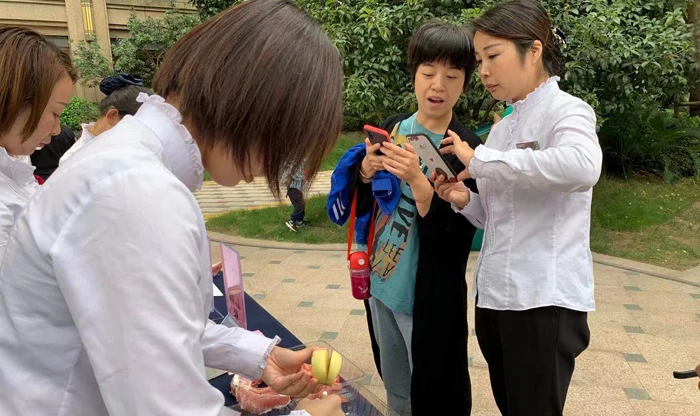 口感与营养兼具的富硒土豆、苹果、红柚等产品立马赢得了在场业主的喜欢,可是要购买这些中意的产品,就必须在线上下单,这下却难倒了老年业主。然而管家们纷纷献上爱心,他们打通最后一步智能操作,在自己的手机上为老年业主扫码代购线上数百元的农产品,完成老人们支持贫困山区早日脱贫的心愿,也印证 了物业与业主之间的信任与默契。