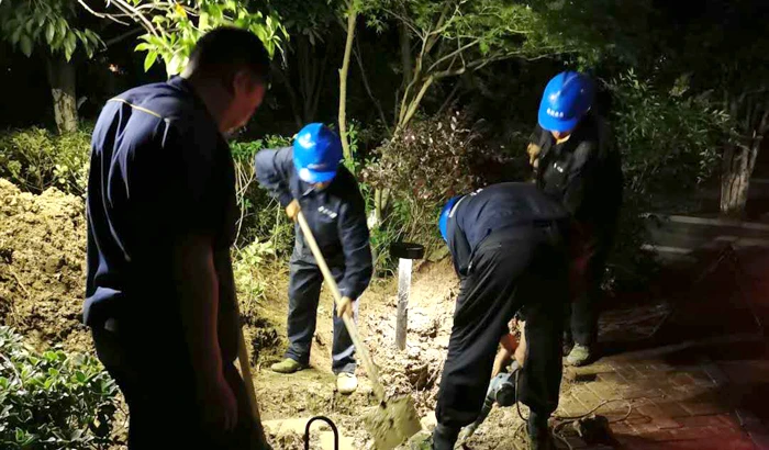 尽管身处凌晨时分,整座城市也是静悄悄的,但水务建设没有片刻犹豫,凌晨时分又紧急加派了7名施工队员赶赴现场增援。