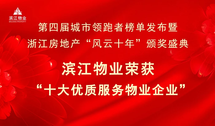 2020年11月18日,在第四届城市领跑者榜单发布暨浙江房地产“风云十年”颁奖盛典上,滨江物业荣获“十大优质服务物业企业”。