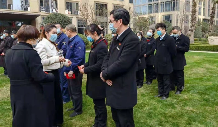 表彰会上,华家池业委会对2020年度工作表现优秀的10名员工进行了嘉奖,这些员工是秩序、保洁、工程与客服部的优秀代表,同时,业委会还慰问了春节留守岗位的60余名物业员工,感谢他们舍小家为大家的服务精神。