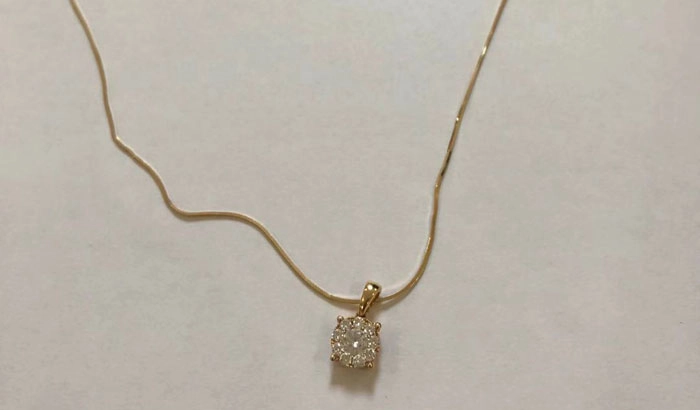 接到前台的信息,管家上门询问业主在小区散步的线路,获得线路后,管家与秩序领班一起去消控室查看监控,多名物业人员一同还原线路寻找。经过一个下午的监控查看和现场寻找,最后物业人员在会所绿化带周围发现了这条钻石项链。