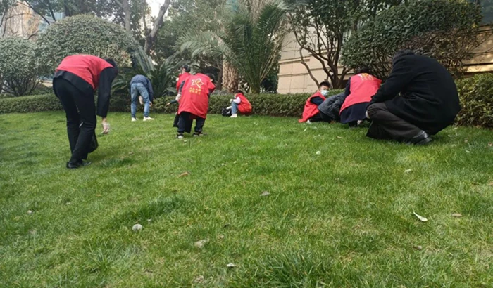 杭州凯旋门公寓在雷锋日不仅为业主开展健康、理发服务,而且还发动小朋友共同爱护园区草坪行动,物业人带领小朋友在草坪间拔杂草。春天,绿色无杂草的草坪充满生机。