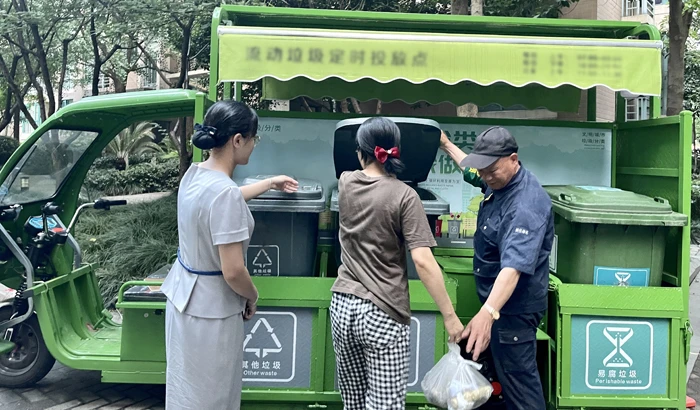 迎杭州亚运会,物业服务增亮点,在街道和社区的大力支持下,杭州庆和苑小区将定点垃圾桶更换为流动垃圾车辆。减少了定点垃圾桶易腐垃圾产生的异味和对周边业户的影响。